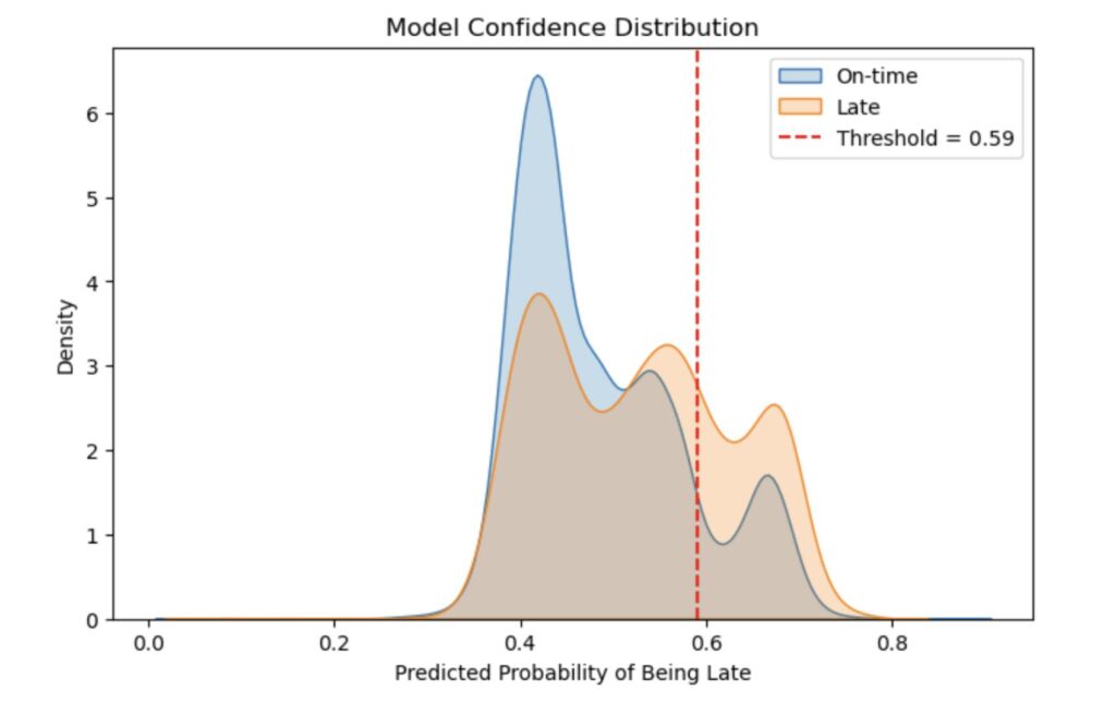 Analyzed 100,000+ order records from Olist, Brazil’s largest online marketplace, to uncover the factors driving late deliveries. Using SQL for data extraction and Python (pandas, scikit-learn) for modeling, I built a logistic regression classifier that achieved 80.8% accuracy and raised precision by 26% after threshold optimization. The project focused on real-world tradeoffs between precision and recall, showing how small model adjustments can improve reliability for business operations. Summarized findings through visualizations and written conclusions highlighting actionable insights to reduce false alerts and improve delivery reliability.